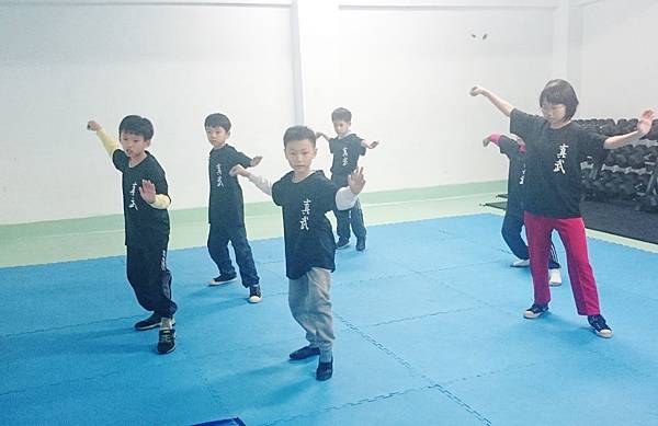 四月份是相當密集繁忙的賽季,真武會館訓練中心比照比賽的場地規格布置環境,進行備賽練習,讓即將參加比賽的小朋友們,能夠先行熟悉比賽時的套路展演節奏,而小朋友們也繃緊了神經加緊練習,除了讓教練們檢核動作之外,彼此間也互相觀察修正。