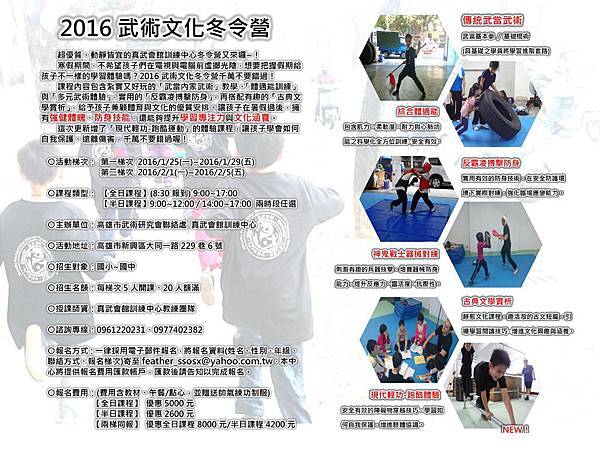 寒假期間,不希望孩子們在電視與電腦前虛擲光陰,想要把握假期給孩子不一樣的學習體驗嗎?2016武術文化冬令營千萬不要錯過!