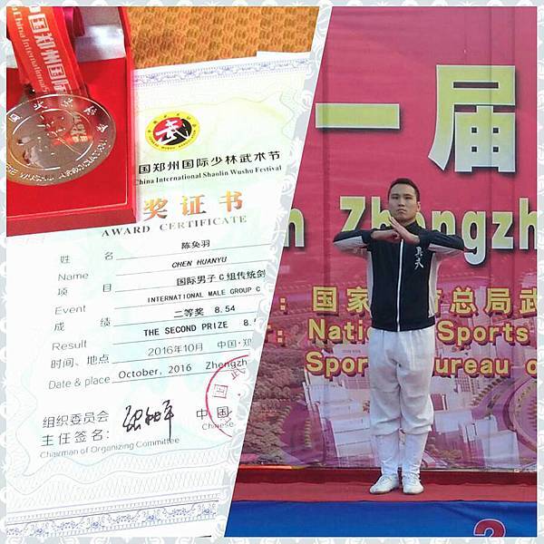 賀!真武會館訓練中心館長陳奐羽教練,參加第十一屆鄭州國際少林武術節錦標賽,分別於劍術與拳術項目獲一銀一銅。