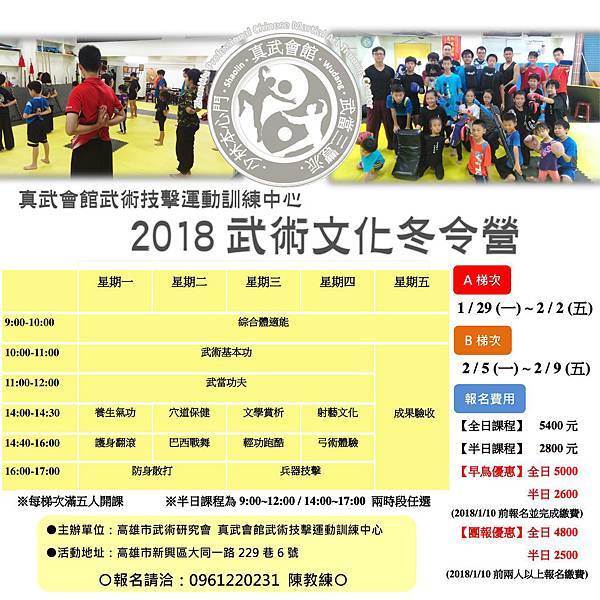 ●報名費用:(費用含教材、午餐/點心,並贈送帥氣練功制服)